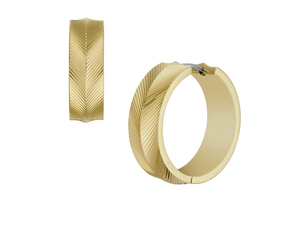 Náušnice jsou vyrobené z kvalitní nerezové oceli, která je pozlacena. Jejich jemná lineární textura jiskří ve světle.