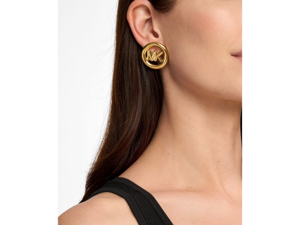 Michael Kors dámské náušnice zaujmou výrazným kruhovým designem a středovým dekorem ve tvaru ikonického loga „MK“.
