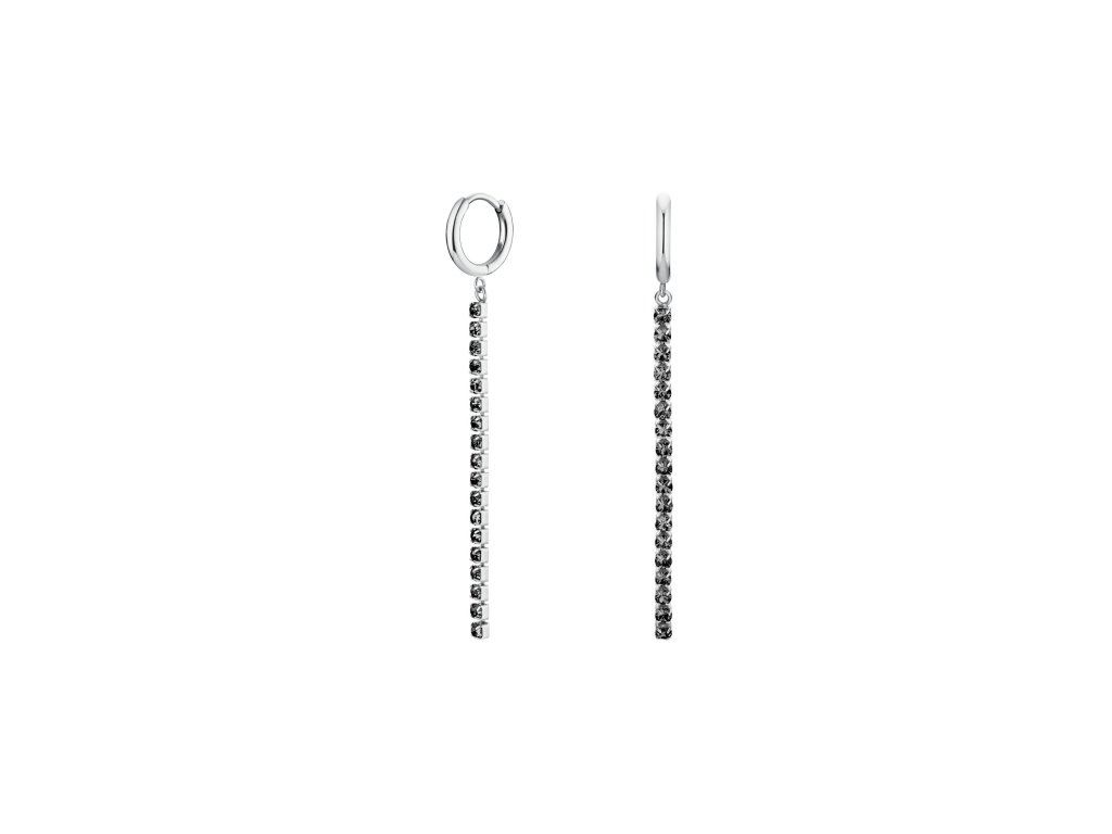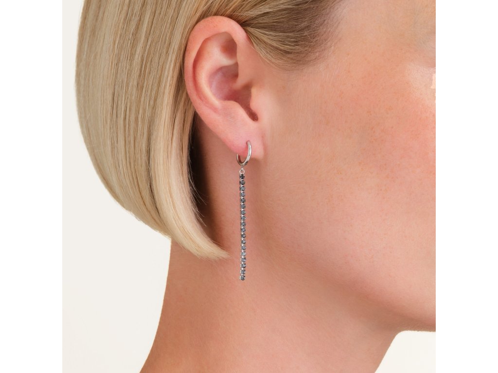 Náušnice vás okouzlí kombinací kroužku a tenké linie, která hladce lemuje tvář. Náušnice jsou osazeny 18 černými krystaly, které září s každým vaším pohybem a dodávají vám neodolatelný půvab.