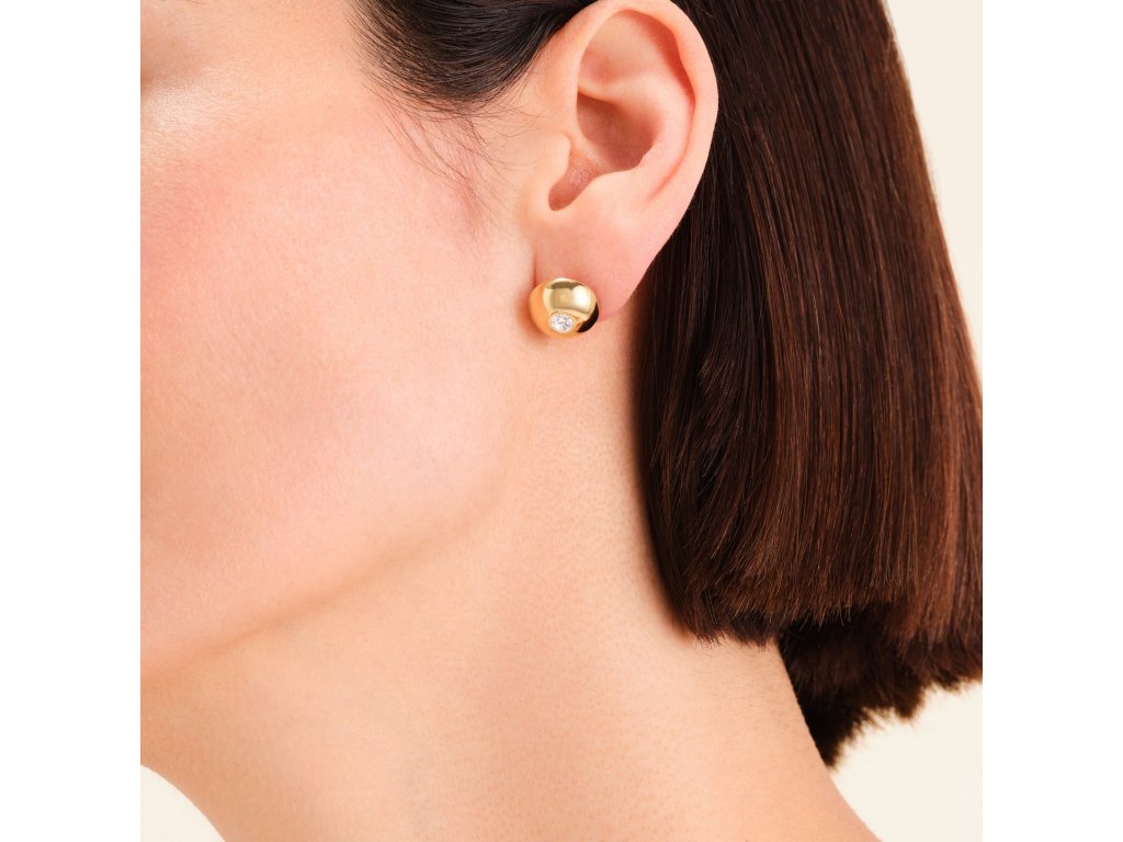 Dokonale kulatý tvar o průměru 1,4 cm a pozlacené provedení z nerezové oceli tvoří elegantní základ, který se hodí ke každému outfitu – od pracovního po večerní. Krystal uprostřed dodává náušnicím sofistikovaný nádech, aniž by působily okázale.