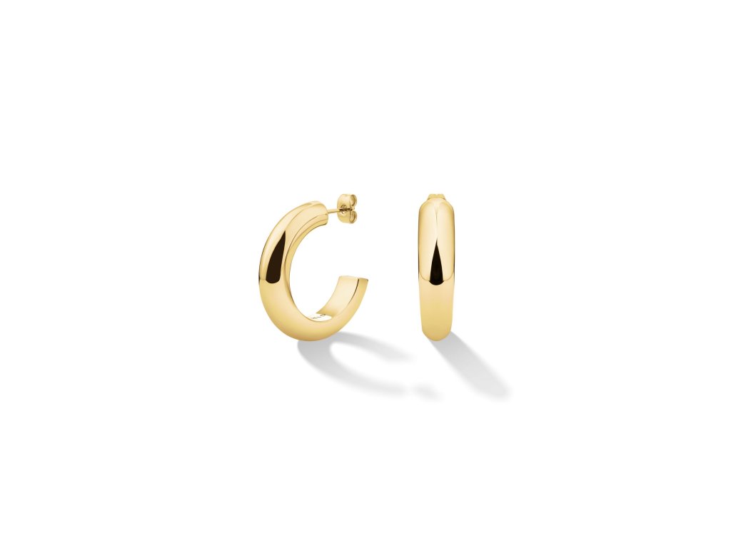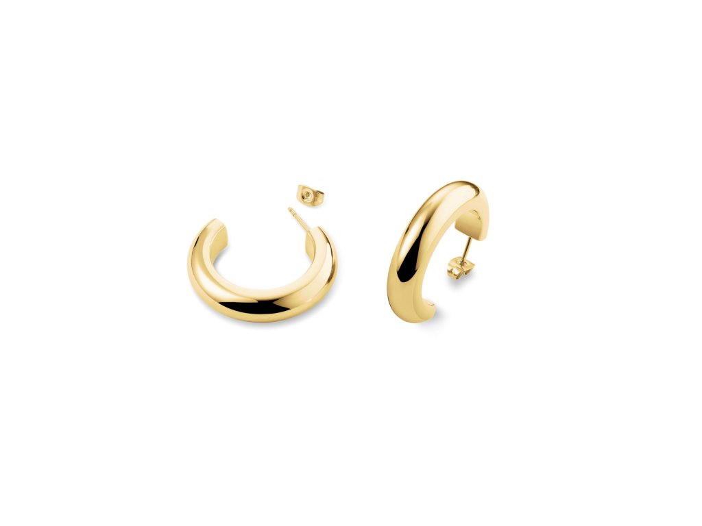 Stylové půlkruhové náušnice typu puzetka zaujmou svým hladkým lesklým povrchem. Jsou vyrobeny z kvalitní nerezové oceli a pozlacené žlutým zlatem.