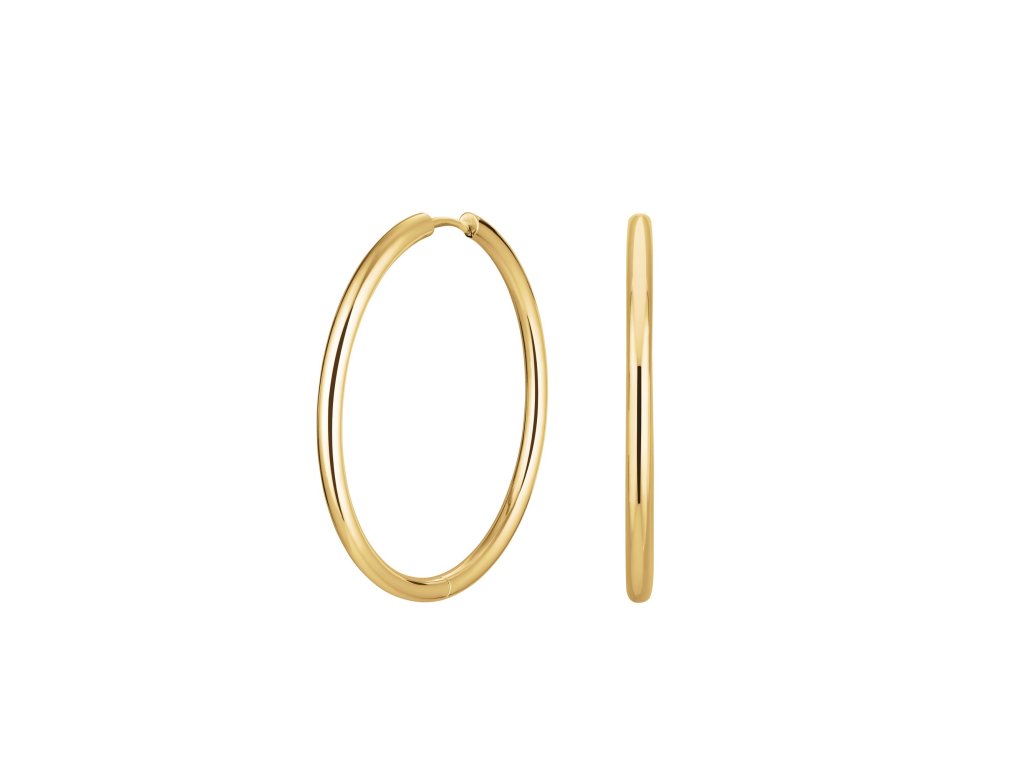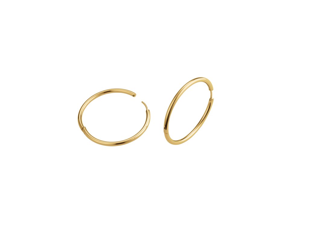 Vyrobené jsou z pozlacené nerezové oceli, mají pohodlné kruhové zapínání a lesklou povrchovou úpravu, která zvýrazní tvar i světelné odlesky. Hodí se pro výraznější outfit i jako kontrast k jednoduchému looku.