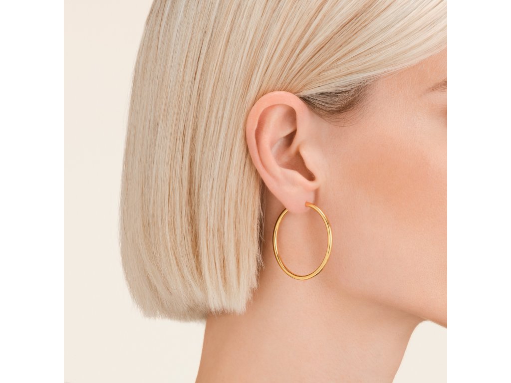 Náušnice Fine Big Hoops od Rosefield přinášejí sebevědomý minimalistický styl. Jejich velký průměr 4 cm a hladký, čistý design z nich dělají výrazný doplněk, který však nepůsobí rušivě nebo těžce.