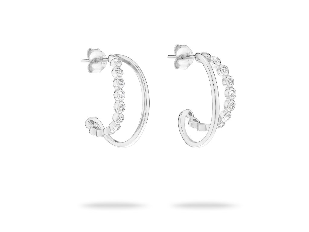 Každá náušnice *je vyrobena ze stříbra 925/1000. Krystaly kubické zirkonie pečlivě zasazené do kovového základu vytvářejí jemný třpyt, jenž se krásně odráží ve světle a dodává vašemu vzhledu oslnivý nádech.