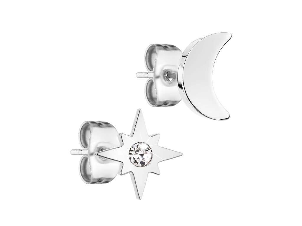 Asymetrické dámské peckové náušnice od Tamaris mají tvar hvězdičky a měsíčku. Libovolně je můžete střídat dle nálady. Střed hvězdičky je ozdoben čirým zirkonem a přímo září.
