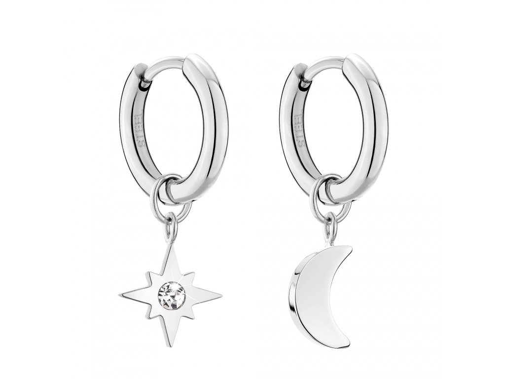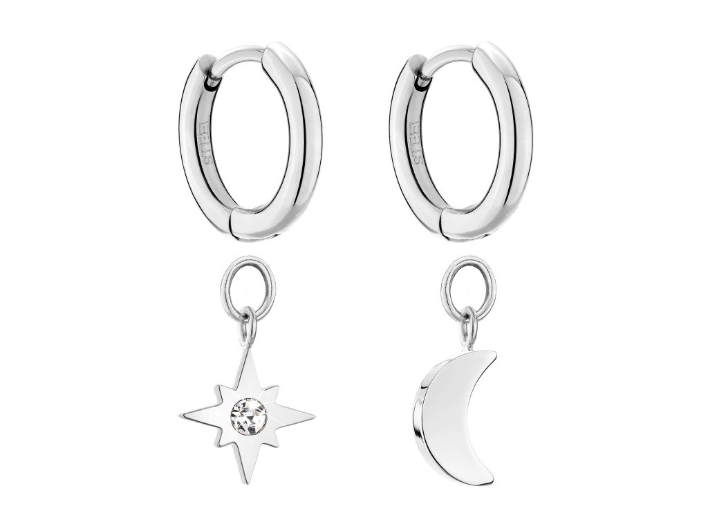 Variabilní náušnice od Tamaris v sobě skrývají dva typy. Využít můžete jednak klasické kruhy, ale můžete k nim i připevnit přívěsky a udělat z nich náušnice visací. Přívěsky mají tvary hvězdičky a měsíčku. Střed hvězdičky je ozdoben čirým zirkonem. Unikátní je možnost odepnutí přívěsků, což umožňuje náušnice přizpůsobit a nosit s různými styly. Jsou tak vhodné k jakýmkoliv příležitostem.