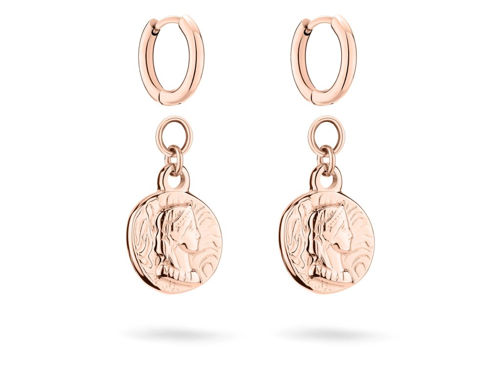 Variabilní náušnice od Tamaris v sobě spojují dva různorodé typy. Mají tvar kruhů a zdobeny jsou přívěskem ve tvaru starožitné mince. Unikátní je možnost odepnutí přívěsků, což umožňuje náušnice přizpůsobit vaší náladě nebo outfitu. Jsou tak vhodné k jakýmkoliv příležitostem.