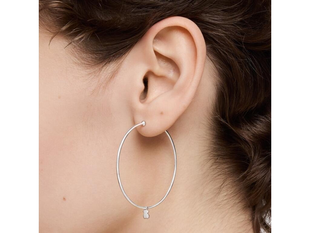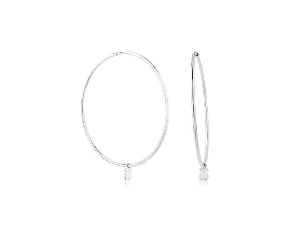 Dámské stříbrné náušnice TOUS ve tvaru velkých kruhů s přívěsky medvídků jsou ztělesněním odvahy, ženskosti a radosti ze sebevyjádření.