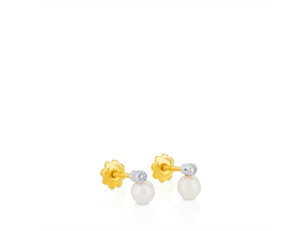 Náušnice Tous Diamonds z 18K zlata, s diamanty s celkovou hmotností 0,02 karátu a perlami o průměru 4 mm.Doplňkové parametry