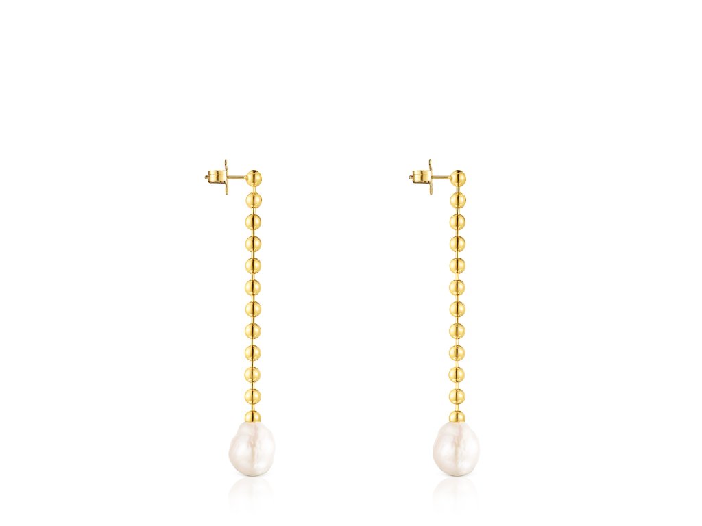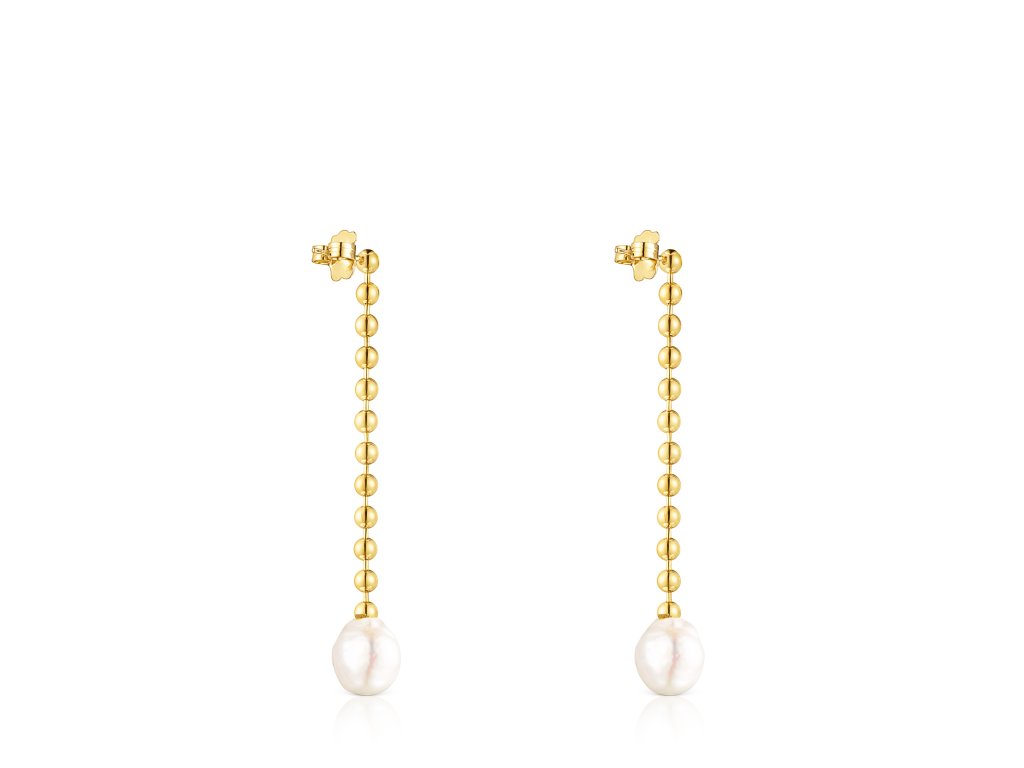 Náušnice Tous Gloss vyrobené ze žlutého stříbra Vermeil a pěstovaných sladkovodních perel. Průměr perel: 15 mm. Délka náušnic: 7,7 cm. Technologie výroby: mechanizovaná. Stříbro Vermeil – vysoce kvalitní stříbro s nejvyšší ryzostí 925/1000 pokryté vrstvou 18K zlata.Doplňkové parametry
