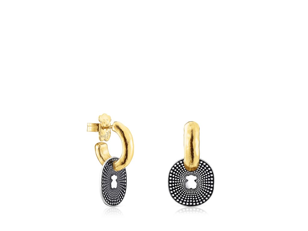 Kruhové náušnice TOUS Oursin s kruhy ze stříbra Vermeil o velikosti 16 mm, medailonem s medvídkem o velikosti 16 mm ze stříbra s ryzostí 925 a černým emailem. Zapínání: Puzety. Stříbro s ryzostí 925, které je pokryté vrstvou 18K zlata o tloušťce 3 - 5 mikronů bez žádné dodatečné vrstvy kovu. Technologie výroby: Odlévání.Doplňkové parametry