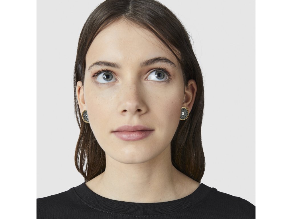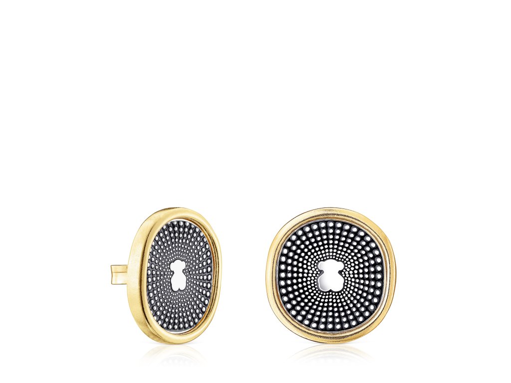 Náušnice TOUS Oursin s aplikací ze stříbra Vermeil, medvídkem ze stříbra s ryzostí 925 a černého emailu. Velikost náušnice: 19 mm. Zapínání: Puzety. Stříbro s ryzostí 925, které je pokryté vrstvou 18K zlata o tloušťce 3 - 5 mikronů bez žádné dodatečné vrstvy kovu. Technologie výroby: Odlévání.Doplňkové parametry