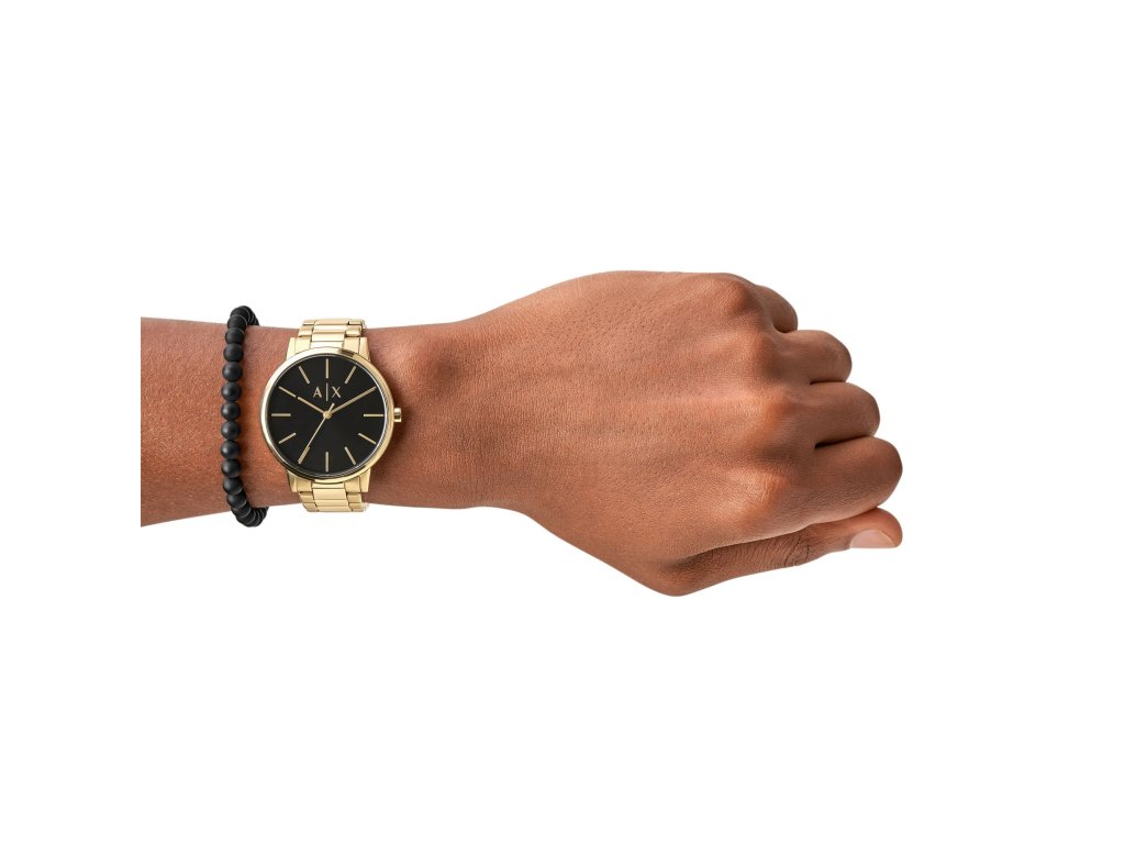 Model Cayde AX7119 je vybaven zlatým ocelovým tahem, kulatým pouzdrem ve zlatém tónu a černým číselníkem o průměru 42 mm. Minimalistický design číselníku zajišťuje přehlednost a univerzální využití. Celek doplňuje minerální sklo a spolehlivý strojek Quartz.