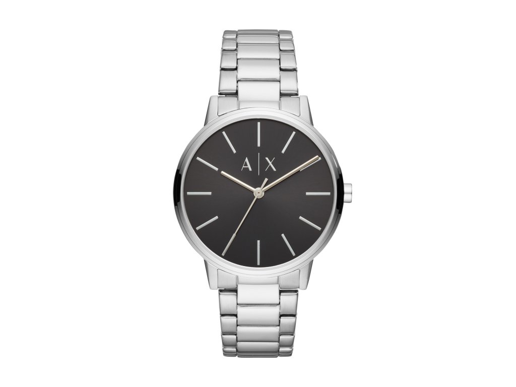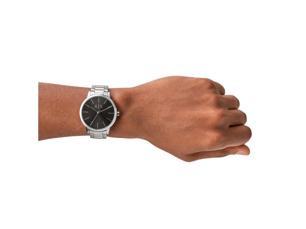 Model Cayde AX2700 je vybaven stříbrným ocelovým tahem, kulatým pouzdrem z oceli a černým číselníkem o průměru 42 mm. Vyznačuje se přehledným zpracováním a nadčasovým stylem. Celek doplňuje minerální sklo a spolehlivý strojek Quartz.