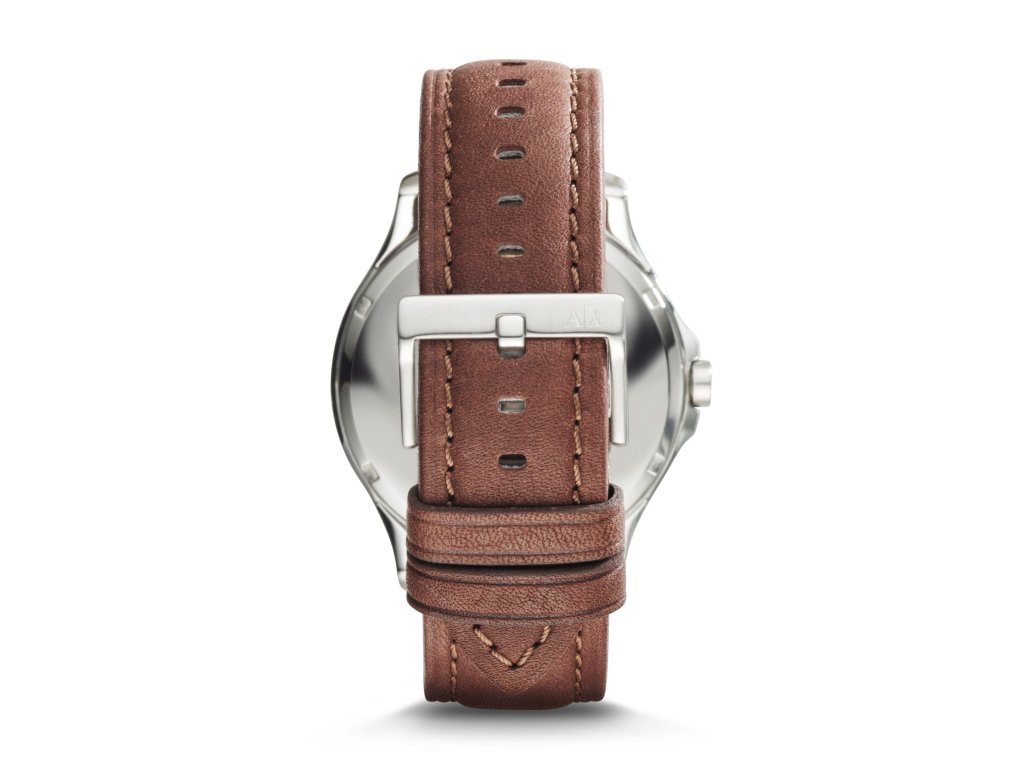 Svěže modrý číselník v kombinaci s kulatým stříbrným pouzdrem z nerezové oceli o průměru 46 mm působí noblesně. Hnědý kožený řemínek přidává do designu teplý a přírodní prvek, který z těchto hodinek činí pohodlný a stylový kousek pro každodenní nošení.