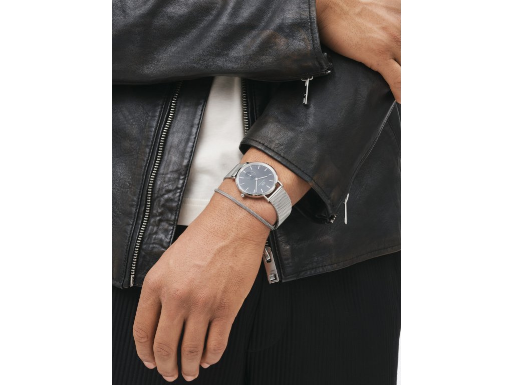 Kulaté pouzdro o průměru 40 mm je doplněno jemným meshovým tahem z ušlechtilé oceli ve stříbrném provedení. Černá barva číselníku se stříbrnými detaily vytváří kontrastní a sofistikovaný vzhled, který se snadno kombinuje s různými styly od formálního až po volnočasový. Kvalitní minerální sklo zajišťuje ochranu proti poškrábání.