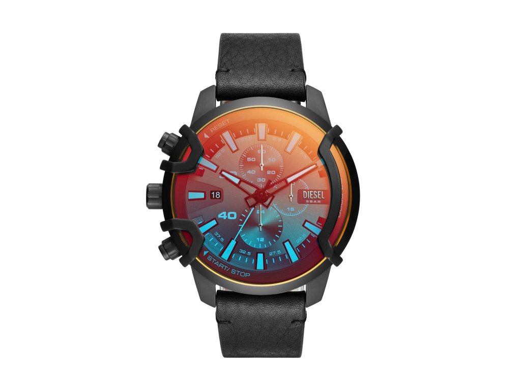 Model DZ4519 je vybaven černým koženým řemínkem, kulatým pouzdrem z černé oceli a vícebarevným číselníkem o průměru 48 mm. Funkce chronografu a praktická datumovka zdůrazňují technický charakter hodinek. Celek doplňuje minerální sklo a spolehlivý strojek Quartz.