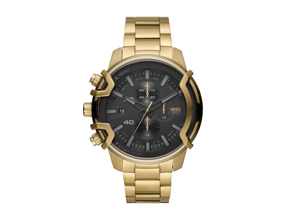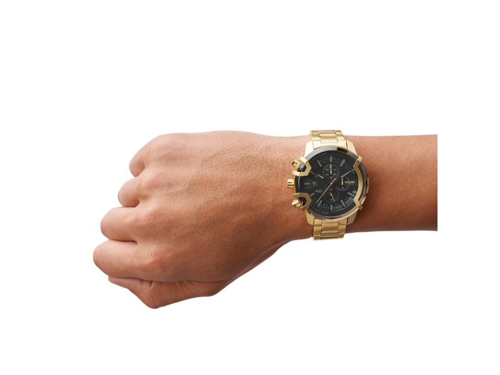 Model DZ4522 je vybaven zlatým ocelovým tahem, kulatým pouzdrem ze zlacené oceli a černým číselníkem o průměru 48 mm. Chronograf a datumovka podtrhují technickou výbavu modelu a vizuální sílu celku. Celek doplňuje minerální sklo a spolehlivý strojek Quartz.