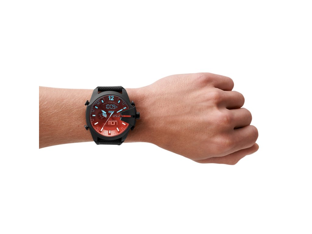 Tento model zaujme na první pohled díky vícebarevnému číselníku, který kontrastuje s černým pouzdrem a vytváří vizuálně výrazný celek. Diesel tím opět dokazuje, že design může být nekompromisní, ale zároveň funkční.