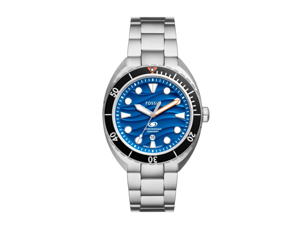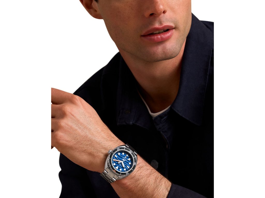 Na atraktivním modrém číselníku na první pohled zaujme efekt vln, výrazné indexy a ručky a praktická datumovka. Pouzdro a tah z nerezové oceli zaručují robustnost a odolnost.