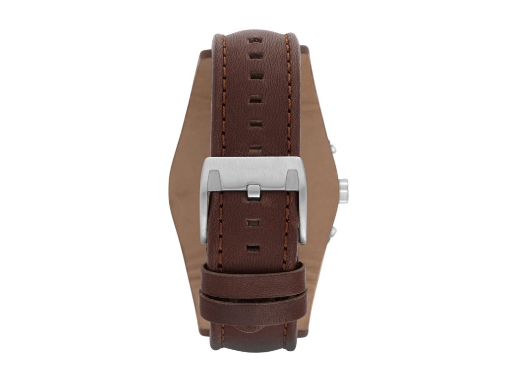 Do kulatého stříbrného pouzdra masivnějšího charakteru z nerezové oceli je zasazen středně velký číselník černé barvy s průměrem 44 mm. S hnědým koženým řemínkem vytváří vizuálně působivou kombinaci. Číselník je dále vybaven chronografem, datumovkou, jednoduchými indexy žluté barvy a stylovými ručkami v barvě bílé. Hodinky jsou navíc odolné a komfortní pro každodenní nošení. Jsou tak ideální volbou pro muže, kteří touží po opravdu funkčním kousku.