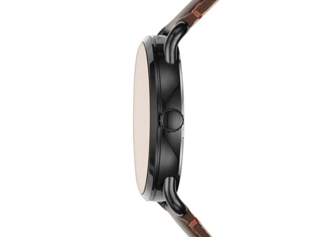 Hnědý kožený řemínek dodává hodinkám přírodní nádech a zároveň zajišťuje pohodlné nošení. Právě materiál a půvabné barvy zvýrazňuji mužský šarm a dodávají vašemu celkovému outfitu elegantní vzhled. Kulaté černé pouzdro z nerezové oceli, do něhož je vsazen číselník o průměru 42 mm hnědé barvy, s hodinkami pěkně ladí. Číselníku dominují moderní ručky a indexy v podobě římských číslic.