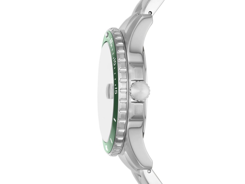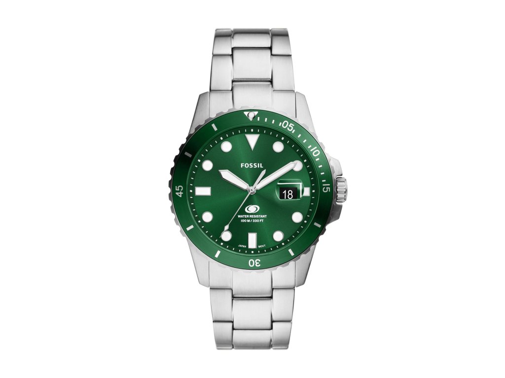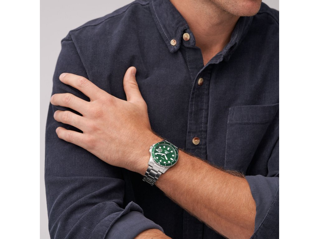 Muže, které baví speciální doplňky, zaujmou pánské hodinky Blue Dive od Fossil, inspirované potápěčskými hodinkami. Tyto hodinky sportovního typu mají vynikající voděodolnost. Jejich čistý design a kombinace zelené a stříbrné z nich delá univerzální doplněk, který se přizpůsobí vašemu stylu a doplní jej v práci a ve volném čase.
