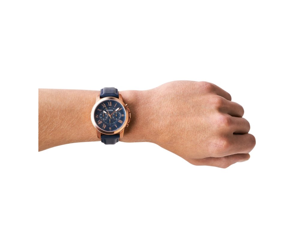 Zvolte si stylové hodinky Grant od Fossil v klasickém provedení, ale moderní barevné kombinaci. Modrá a růžovozlatá na nich funguje v kontrastní harmonii a vytváří z nich neobyčejný doplněk.