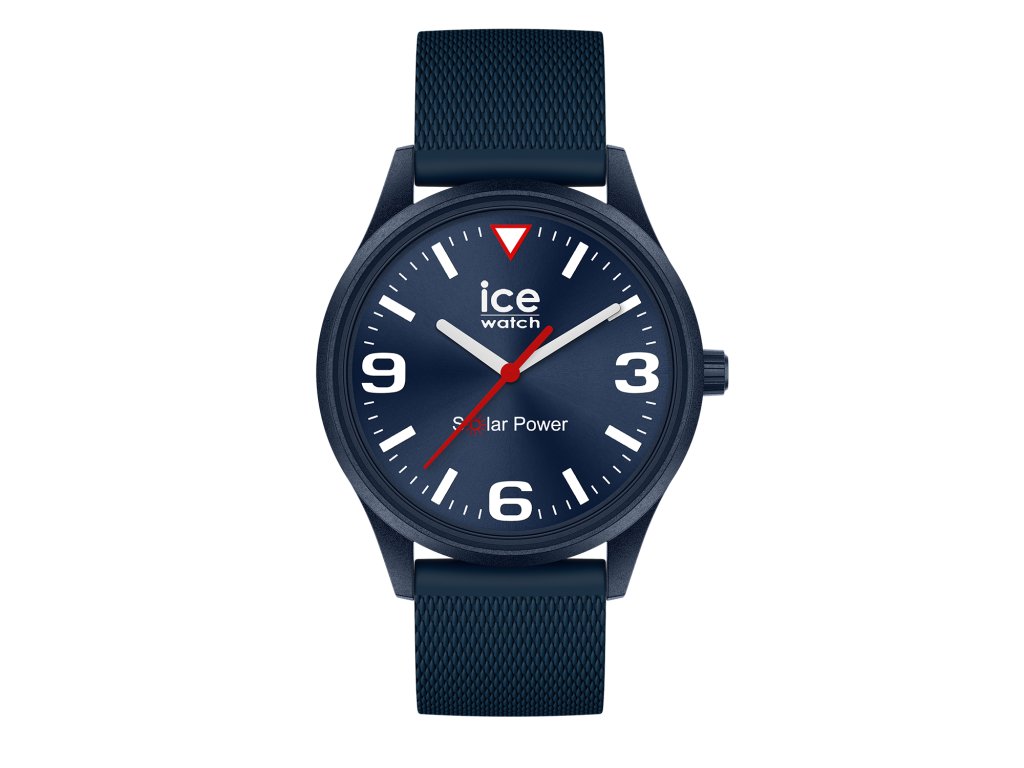 Tmavě modré pánské hodinky se solárním pohonem, s bílými a červenými detaily. Ultra lehké, se silikonovým řemínkem.Doplňkové parametry