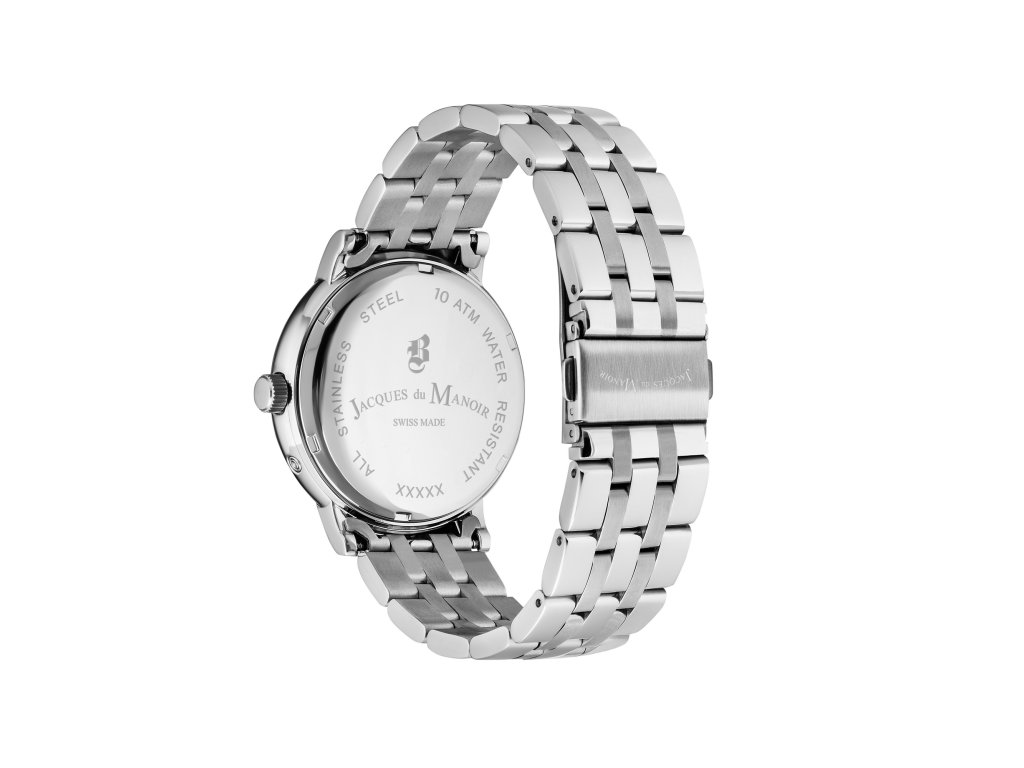 Hodinky v minimalistickém, moderní designu v kombinaci s elegancí z kvalitní nerezové oceli, které činí hodinky velmi odolnými. Safírové sklíčko je odolné proti poškrábání a nárazům. Číselník černé barvy je stylově zdobený dvěma chronografy, jež zobrazují den a měsíc. Nechybí ani vteřinová ručička.Doplňkové parametry