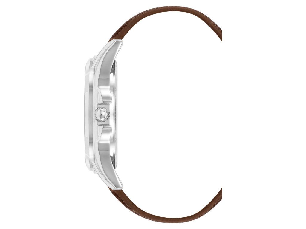 Řemínek z veganské kůže v hnědé barvě zajišťuje pohodlné nošení a podtrhuje elegantní vzhled hodinek. Kulaté pouzdro ve stříbrné barvě dodává modelu čistý a univerzální základ, který nechává vyniknout kontrastnímu číselníku. Hodinky jsou vybaveny spolehlivým strojkem Quartz a chráněny minerálním sklem.