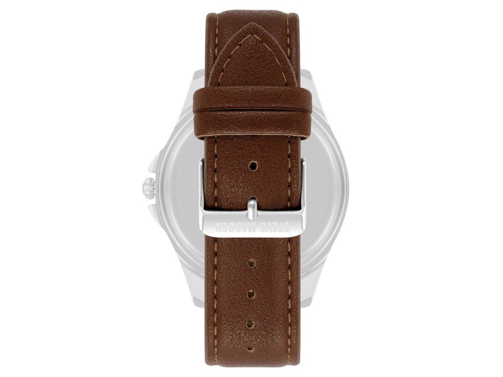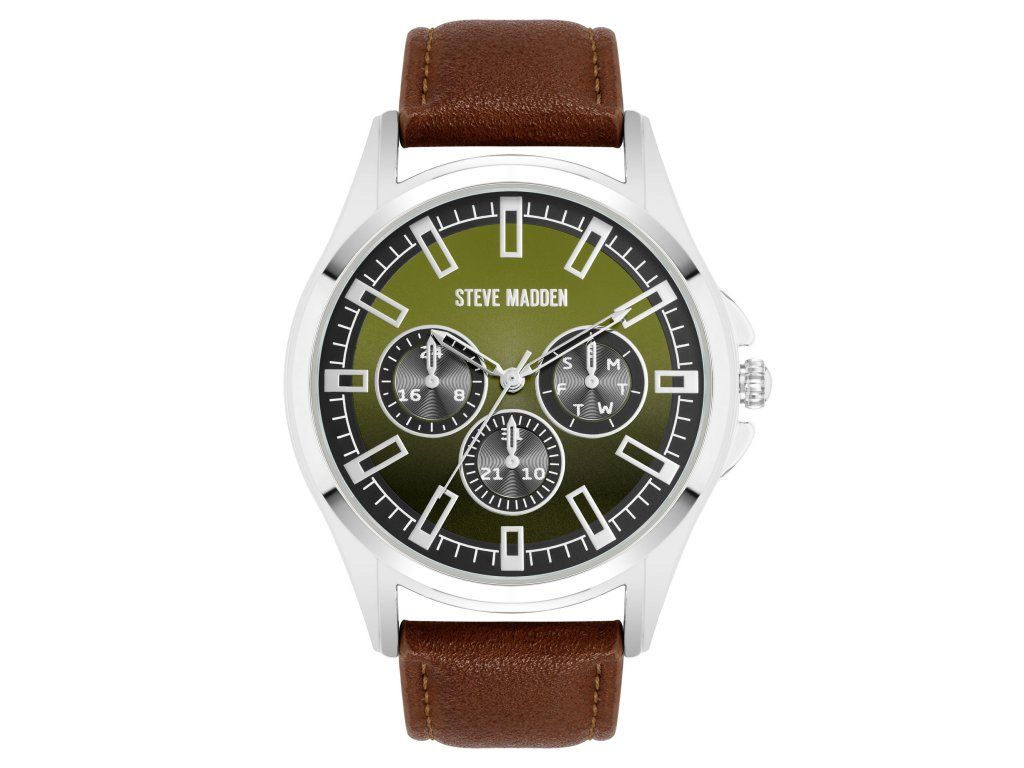 Pánské hodinky Steve Madden v sobě spojují moderní eleganci, osobitý styl a výrazné barevné kontrasty. Zelený číselník dodává modelu svěží a neotřelý charakter, zatímco kombinace s hnědým řemínkem vytváří velmi příjemný a sofistikovaný vizuální celek.