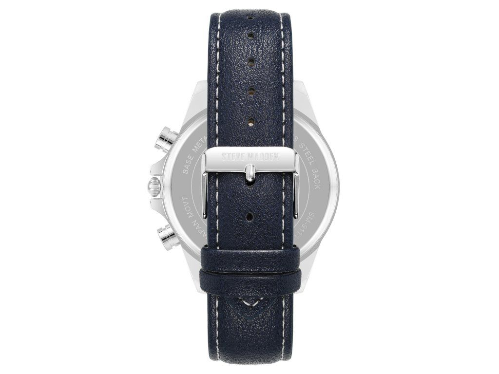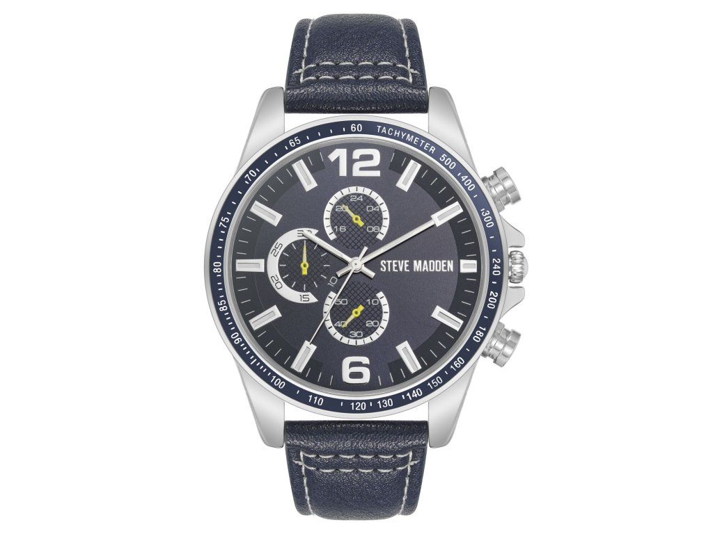 Pánské hodinky Steve Madden v sobě spojují moderní styl, svěží barevné ladění a elegantní design. Modré tóny doplněné stříbrnými detaily vytvářejí harmonický a současně výrazný vzhled, který působí sebevědomě a moderně.
