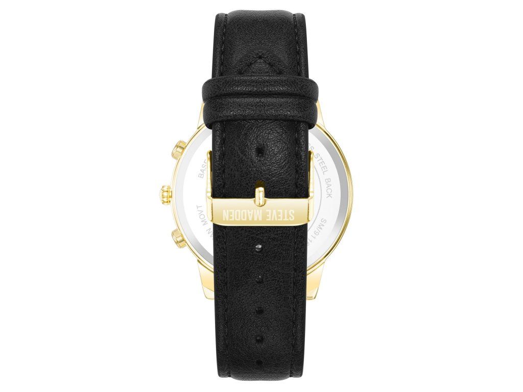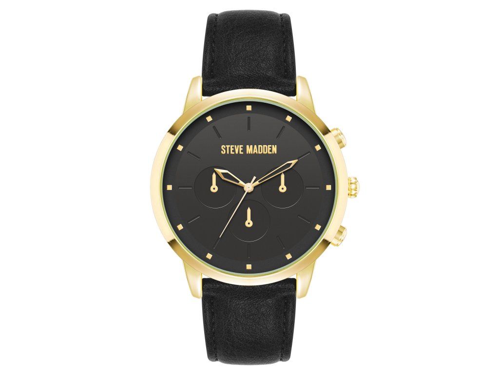 Pánské hodinky Steve Madden v sobě spojují moderní eleganci, výrazný kontrast a módní styl. Kombinace černého číselníku, pouzdra a ruček ve zlaté barvě působí sebevědomě a současně nadčasově, díky čemuž se hodinky stanou výrazným prvkem každého outfitu.