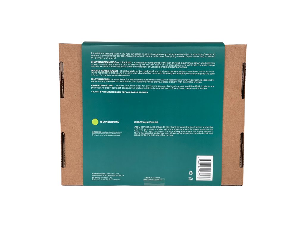 Vše potřebné (kromě zručnosti) k dokonalému mokrému oholení! Skvělý dárek pro každého muže, který rád věnuje svému vzhledu mimořádnou pozornost. Vytvořeno pro dosažení profesionálního zážitku jako z holičství v každé koupelně. Obsahuje: Břitva s dvojitým ostřím Břitva s dvojitým břitem se vrací k tradiční éře holení, která vyžaduje přesnost a zručnost. Pomocí vyměnitelných břitů a klasické těžké rukojeti kombinuje styl, neuvěřitelně přesné oholení a snadné použití. Nádhera. Krém na holení se sicilskou limetkou (100 ml) Nezbytná součást zážitku z mokrého holení. Při použití se štětkou je tento krém na holení nezbytný pro dosažení hladkého povrchu. Při důkladném oholení si poradí i s tvrdým strništěm. S vůní přírodní sicilské limetky připomínající tradiční londýnské holičství. Štětka na holení Tato veganská štětka na holení se syntetickými štětinami mísí horkou vodu a krém na holení do překvapivě husté pěny, a umožňuje tak mnohem pohodlnější oholení. Pomáhá odstraňovat nežádoucí odumřelou kůži a předcházet škrábancům, pořezání nebo podráždění při holení. Stojánek na štětku na holení Každá štětka si zaslouží svůj trůn! Tento odkládací stojánek drží štětku na místě při sušení a zajišťuje, že zůstane ve skvělém stavu. Je hygienický i praktický a jeho průhledný, kompaktní design je dokonalým doplňkem každé koupelny. 1 balení vyměnitelných břitů s dvojím ostřím.Doplňkové parametry