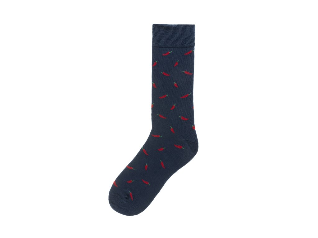 Funky Steps je britská značka, která ví, že styl se často skrývá v detailech. Tyto ponožky jsou ideální pro muže, kteří chtějí trochu originality, ale zároveň potřebují zůstat v mezích firemního dress codu. Jemný vzor chilli papriček je zábavný, ale díky tmavě modrému podkladu pořád dostatečně uhlazený.