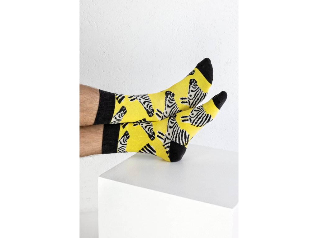 Dvě výrazné barvy a jeden nepřehlédnutelný motiv. Pánské ponožky Funky Steps ve žluté a modré barvě s grafikou zebry jsou hravé, nápadné a skvělé pro muže, kteří se nebojí vystoupit z davu a vyhrnout své nohavice. Jsou ideální pro chvíle, kdy chcete outfitu dodat trochu odvahy a osobitosti.