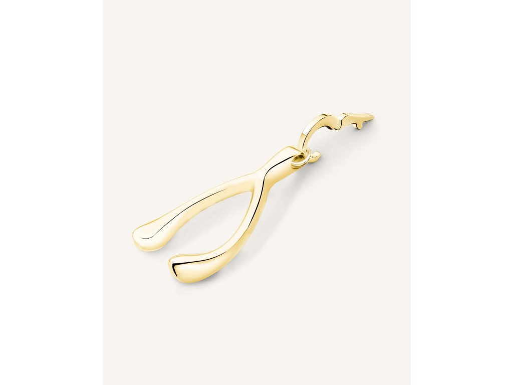 Přívěsek Rosefield, Symbol štěstí Ptačí kost je vyroben z nerezové oceli a pozlacen, spona je odnímatelná a tak si přívěskem můžete ozdobit některé typy náušnic, řetízků, náhrdelníků i náramků, rozměry: 1.8 x 1.0 x 0.2 cm.Doplňkové parametry