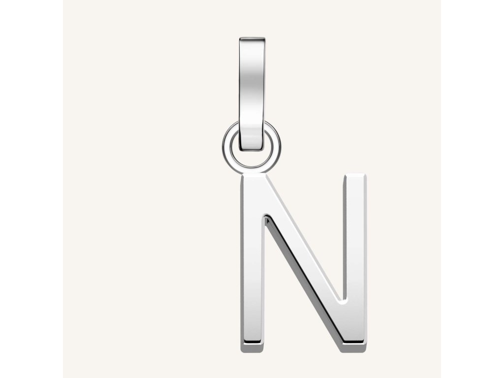 Přívěsek Rosefield, Písmenko N je vyrobeno z nerezové oceli, porhodiované, spona je odnímatelná a tak si písmenkem můžete ozdobit některé typy náušnic, řetízků, náhrdelníků i náramků, rozměry: 0.7 x 0.9 x 0.2 cm.Doplňkové parametry