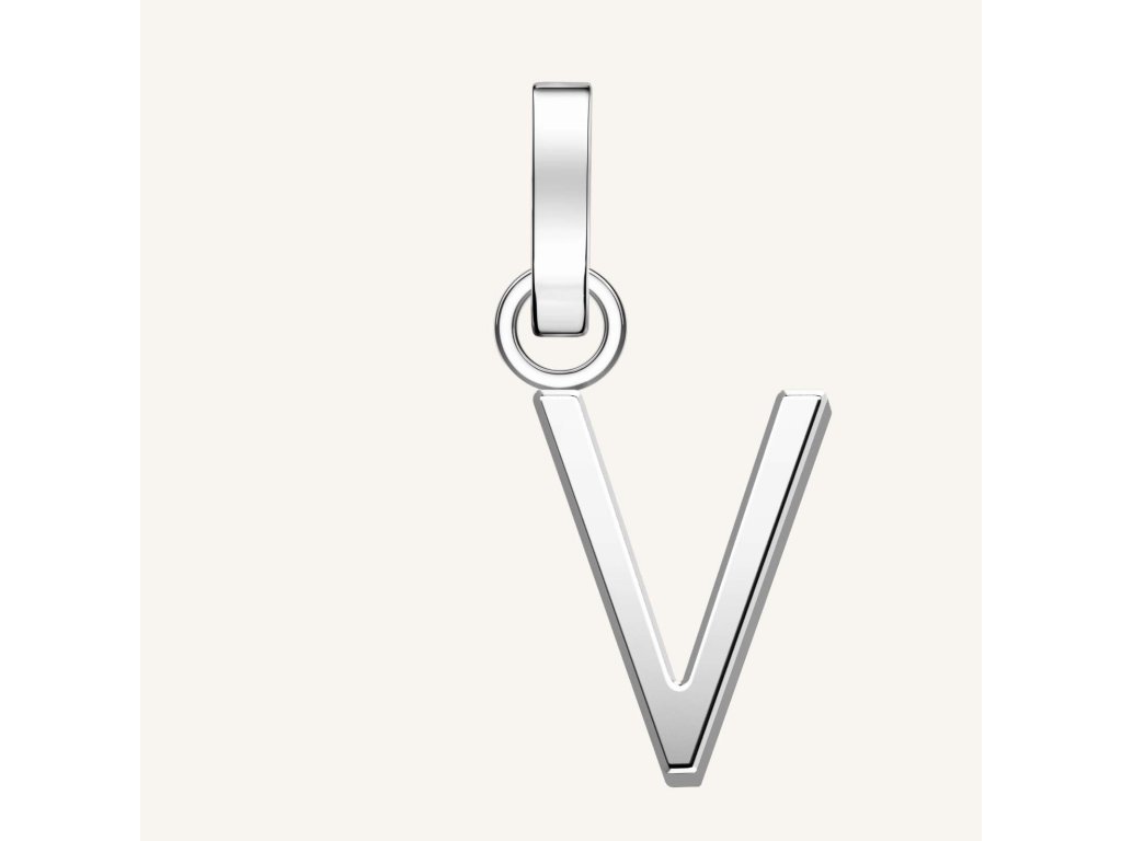 Přívěsek Rosefield, Písmenko V je vyrobeno z nerezové oceli, porhodiované, spona je odnímatelná a tak si písmenkem můžete ozdobit některé typy náušnic, řetízků, náhrdelníků i náramků, rozměry: 0.7 x 0.9 x 0.2 cm.Doplňkové parametry