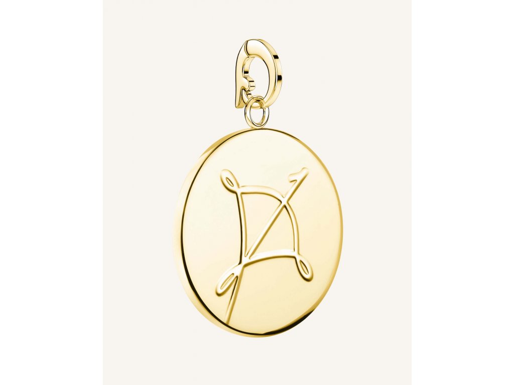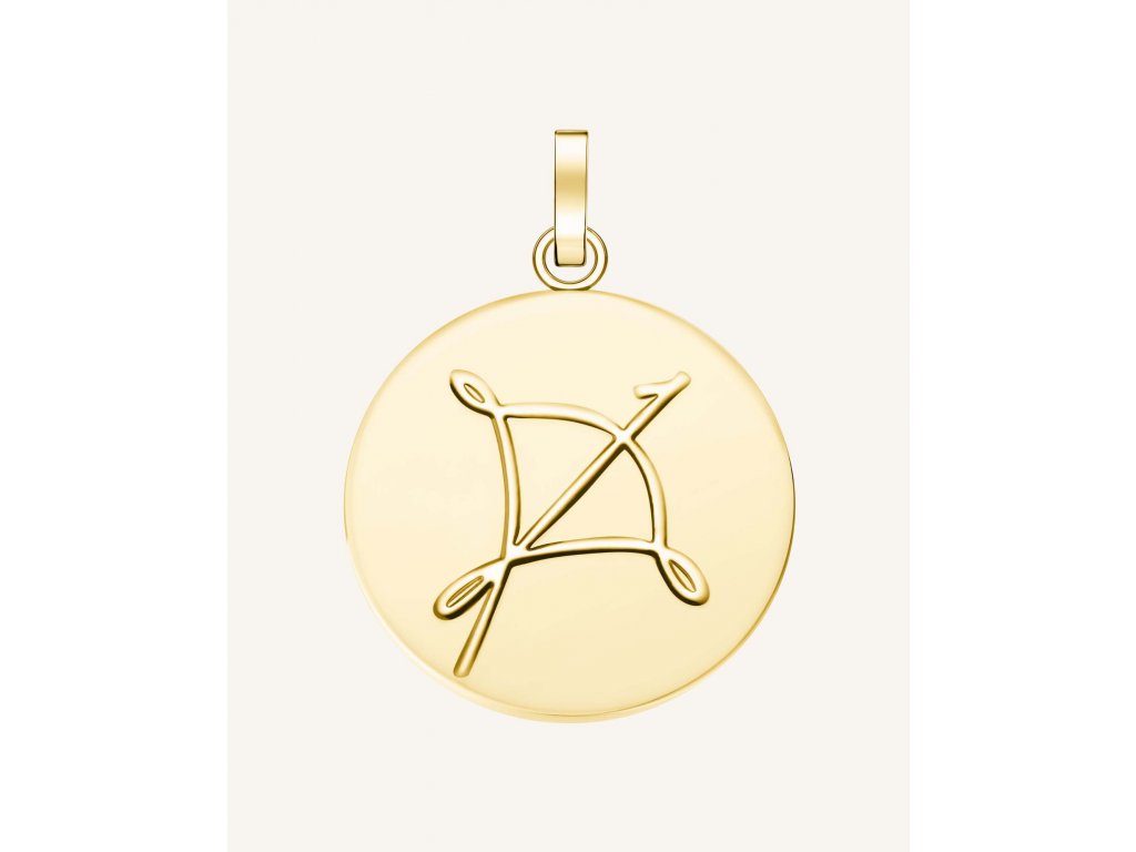 Přívěsek Rosefield, Mince zlaté barvy se znamením Střelec je vyrobena z nerezové oceli a pozlacená, odnímatelná spona, 2.0 x 2.0 x 0.2 cm.Doplňkové parametry