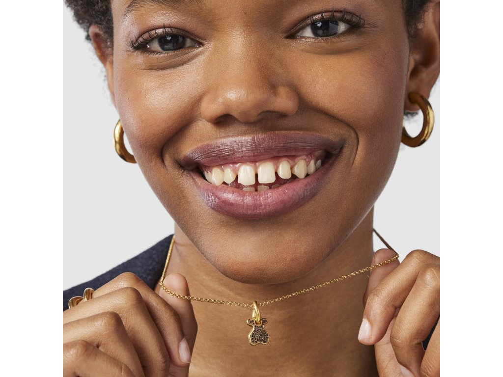 Přívěsek Tous Luah vyrobený ze žlutého stříbra Vermeil se záhnědou s hnědou vrstvou rhodia. Velikost přívěsku: 1,3 cm. Řetízek není součástí produktu. Technologie výroby: odlévání. Stříbro Vermeil – vysoce kvalitní stříbro s nejvyšší ryzostí 925 pokryté vrstvou 18K zlata.Doplňkové parametry