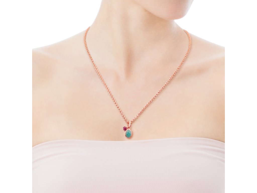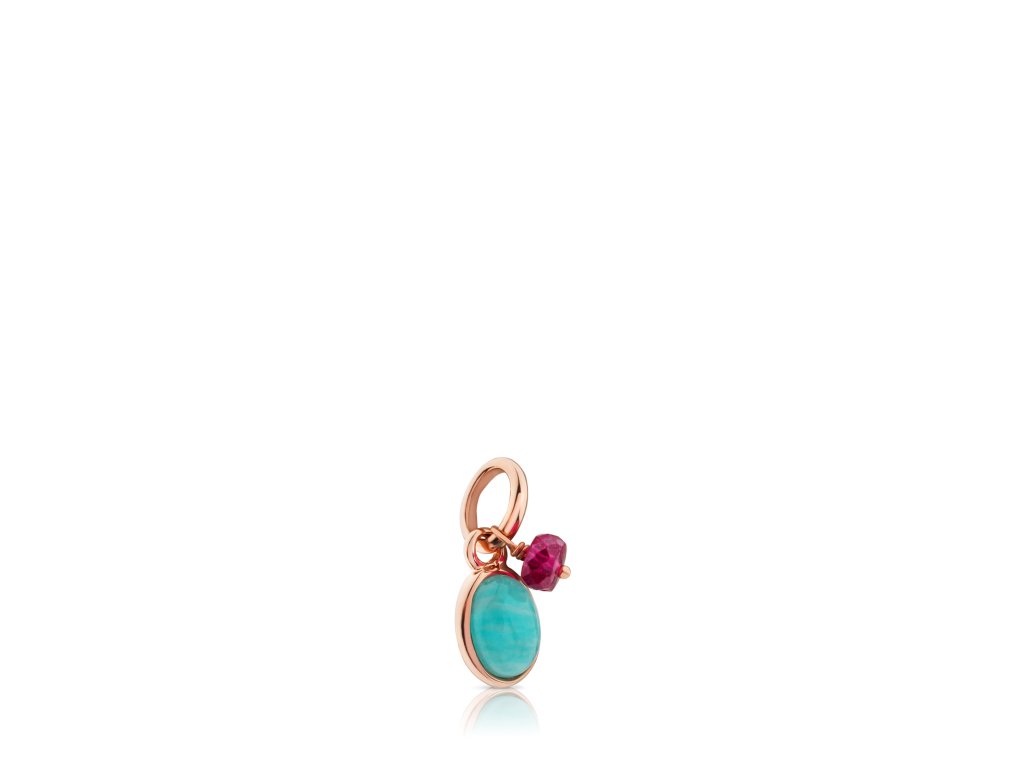 Přívěsek TOUS Tiny z růžově pozlaceného stříbra s amazonitem a rubínem. Velikost: 0,9 cm. Vermeil: Mincovní stříbro s vrstvou 18K růžového zlata. (Řetízek se prodává zvlášť)Doplňkové parametry