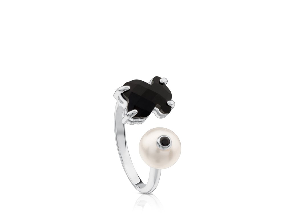 Otevřený prsten Tous Erma vyrobený ze stříbra ryzosti 925/1000 s onyksem, perlou a spinelemDoplňkové parametry