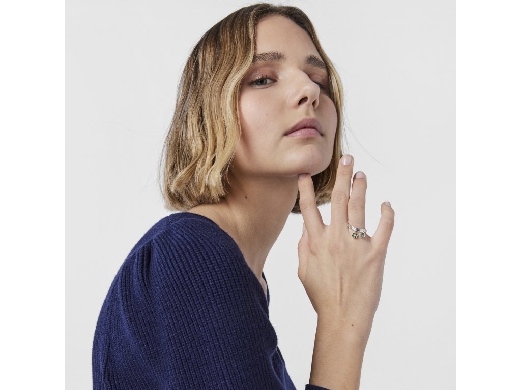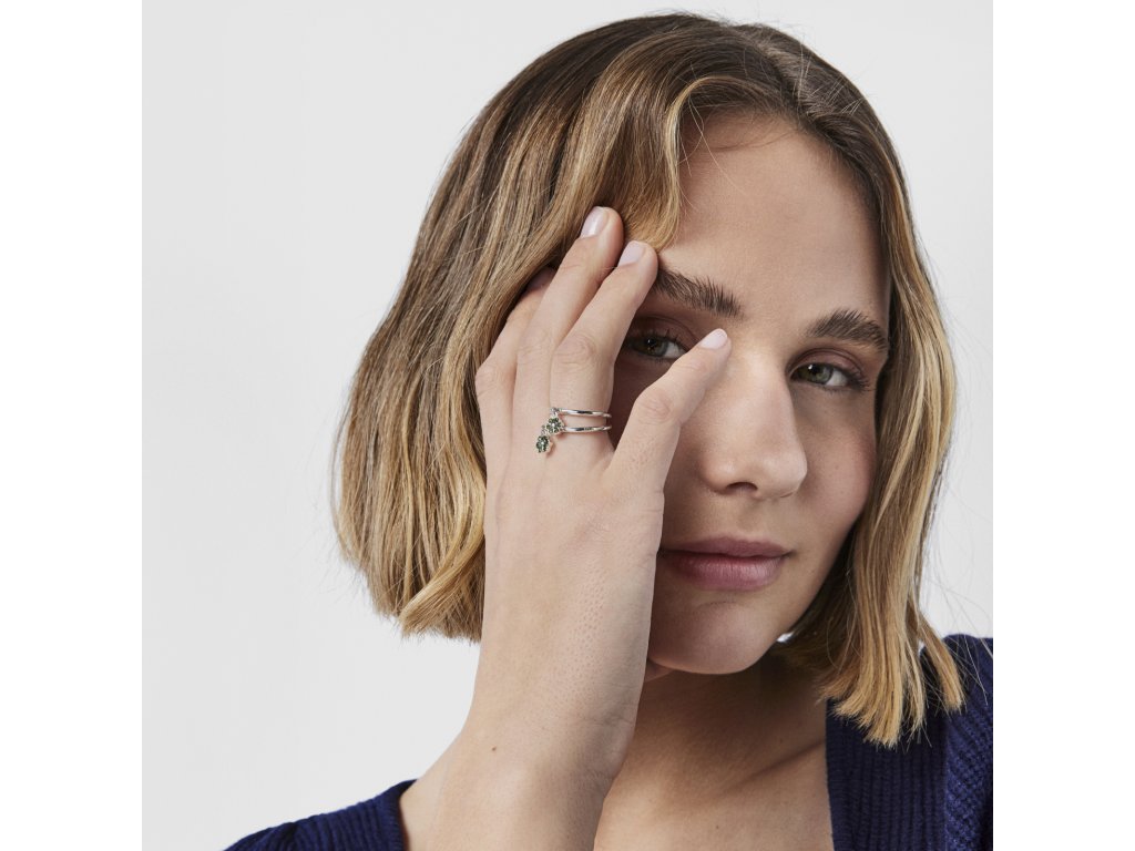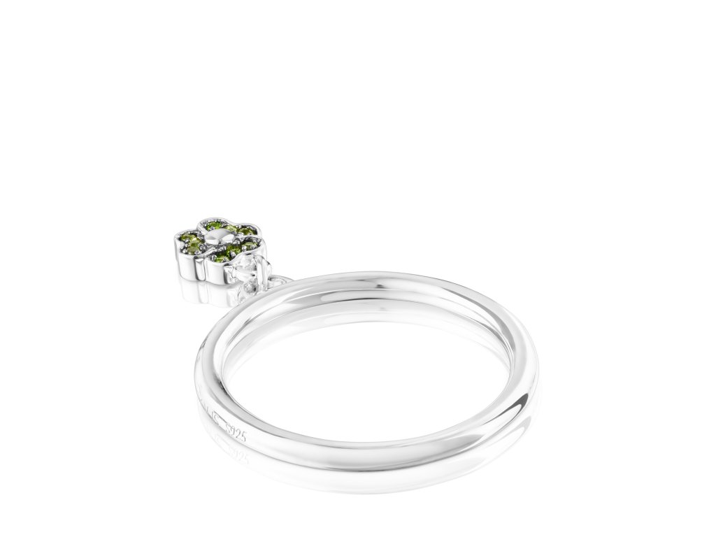 Prsten TOUS New Motif z mincovního stříbra s květinou z chromdiopsidů o rozměrech 5 × 5,46 mm. Tloušťka prstenu: 1,5 mm.Doplňkové parametry