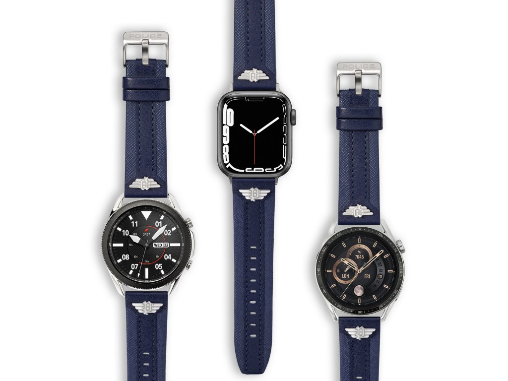 Univerzální řemínek Police z královsky modré kůže je kompatibilní s chytrými i klasickými analogovými hodinkami