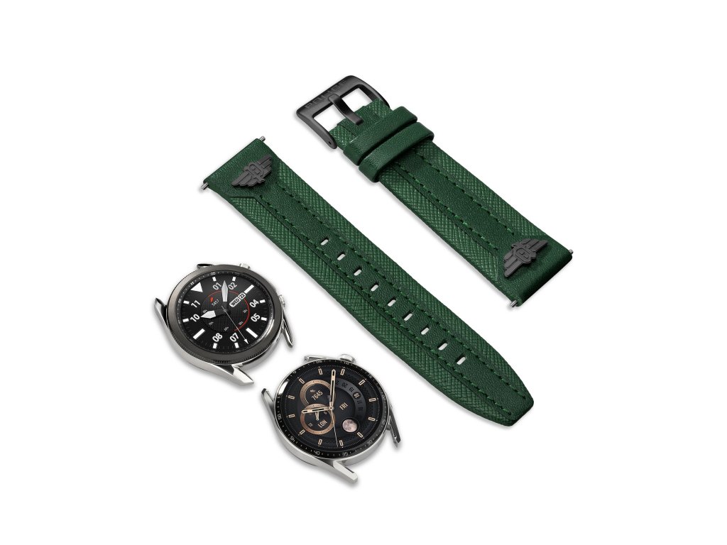 Kompatibilita: Apple Watch 42/44/45/49 mm (Series 3–9, SE, Ultra, Ultra 2), Samsung Galaxy Watch 3 45 mm, Galaxy Watch 46 mm, Gear S3 Frontier, Gear S3 Classic, Huawei Honor Magic, Huawei Watch 2 Classic, Huawei Watch GT 2, GT 2E 42 mm, GT 2 Pro 42 mm, GT 2 46 mm, GT 2 Pro 46 mm, GT 2E 46 mm, Watch 3, Watch 3 46 mm, Watch 3 48 mm, Watch 3 Pro 46 mm, Watch 3 Pro 48 mm, Watch GT 3 46 mm, Watch GT 3 Runner 46 mm, Watch GT 46 mm a další modely se šířkou uchycení 22 mm. Apple Watch ani jiné hodinky nejsou součástí balení.