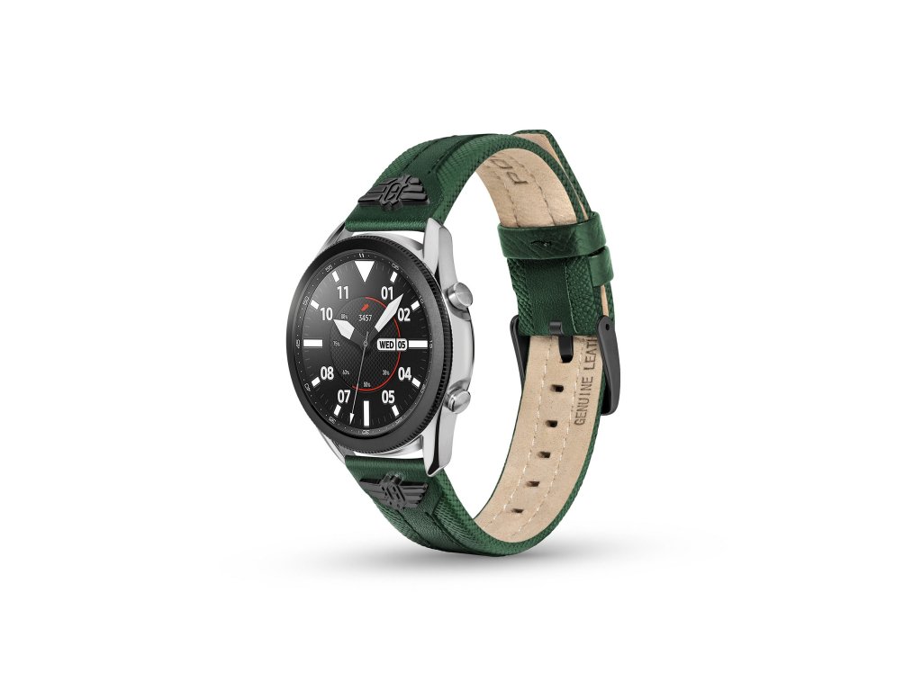 p>Univerzální řemínek Police z tmavě zelené kůže je kompatibilní s chytrými i klasickými analogovými hodinkami. Elegantní provedení promění vaše hodinky ve stylový doplněk. Díky praktickému mechanismu zatlačovacího kolíku jej vyměníte jednoduše a bez použití nářadí.