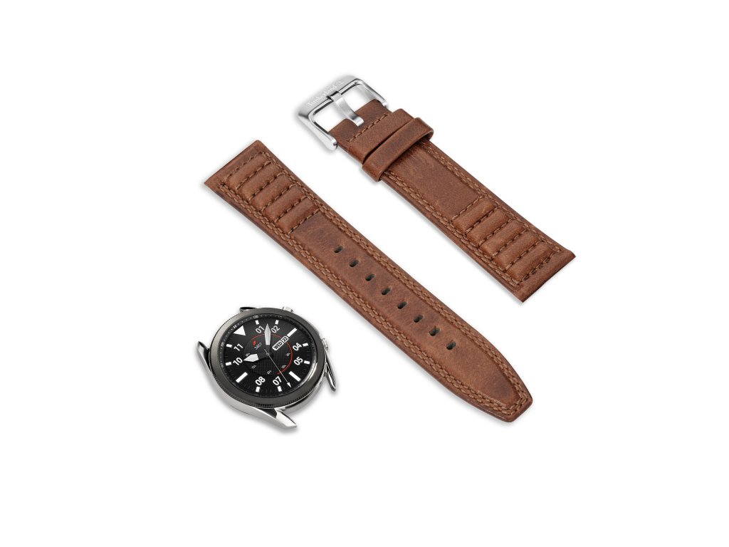 Univerzální řemínek Timberland Armoskaeg z hnědé kůže je kompatibilní s chytrými i klasickými analogovými hodinkami.