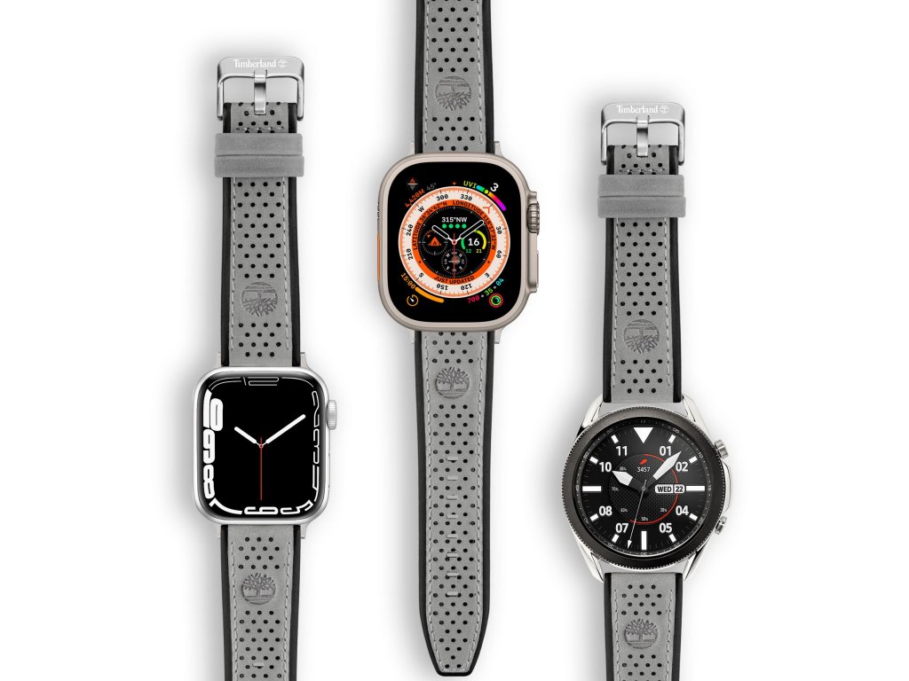 Šedo-černý unisex kožený řemínek Timberland Attleboro je kompatibilní s chytrými i klasickými analogovými hodinkami.